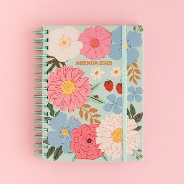 Es semana a la vista, tamaño A5, con tapa dura y elástico a tono. Encuadernación en espiral. Agenda de 100 hojas, impresa en papel obra de 80gr. El interior es el mismo en todas las agendas.