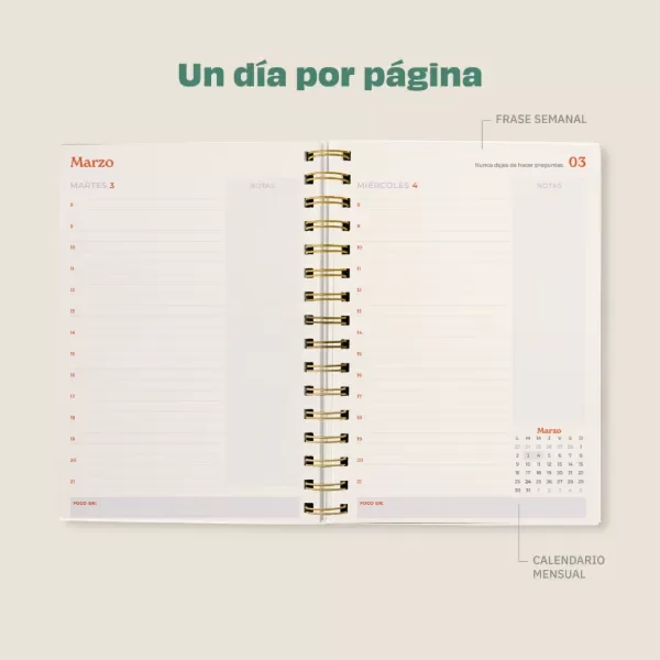 Una agenda diaria con horarios que te permite escribir, tachar y volver a escribir, para mantener organizado tu 2026.