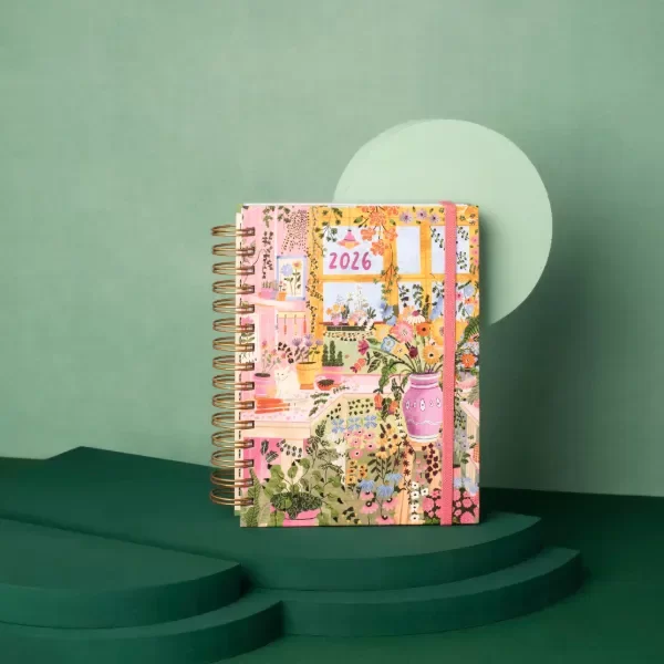 Una agenda diaria con horarios que te permite escribir, tachar y volver a escribir, para mantener organizado tu 2026.