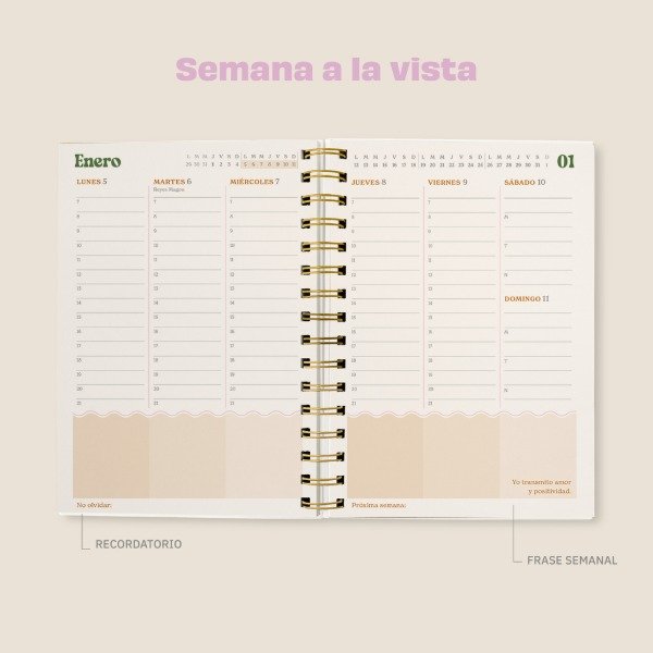 Una agenda donde Naty Franz nos invita a poner el foco en nuestro bienestar, mientras planificamos la rutina.