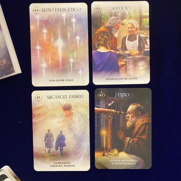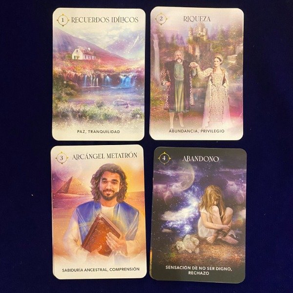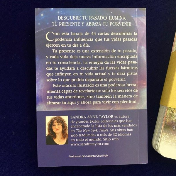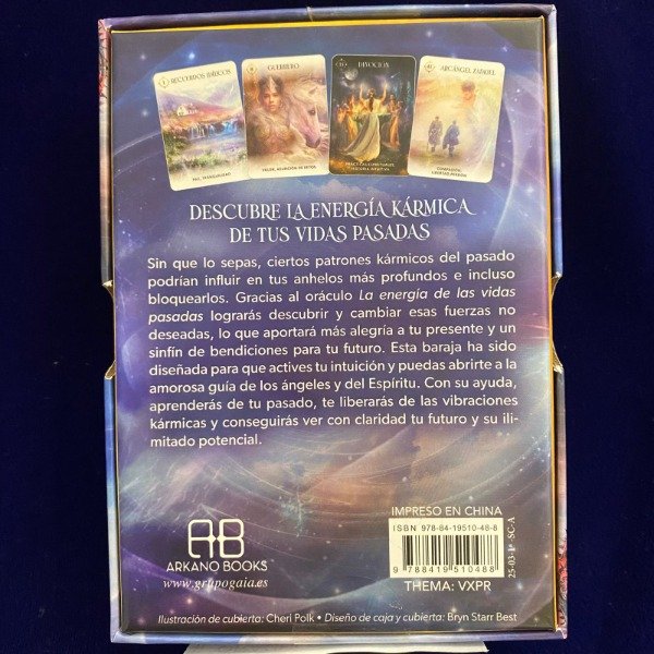 DESCUBRE LA ENERGIA KARMICA DE TUS VIDAS PASADAS Sin que lo sepas, ciertos patrones karmicos del pasado podrian influir en tus anhelos mas profundos e incluso bloquearlos. Gracias al oraculo La energia de las vidas pasadas lograras descubrir y cambiar esas fuerzas no deseadas, lo que aportara mas alegria a tu presente y un sinfin de bendiciones para tu futuro. Esta baraja ha sido diseñada para que actives tu intuicion y puedas abrirte a la amorosa guia de los angeles y del Espiritu. Con su ayuda, aprenderas de tu pasado, te liberaras de las vibraciones karmicas y conseguiras ver con claridad tu futuro y su ilimitado potencial.