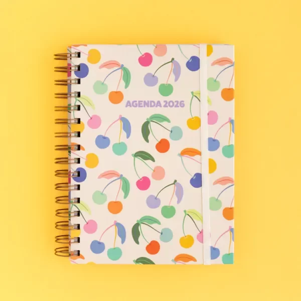 Es semana a la vista, tamaño A5, con tapa dura y elástico a tono. Encuadernación en espiral. Agenda de 100 hojas, impresa en papel obra de 80gr. El interior es el mismo en todas las agendas.