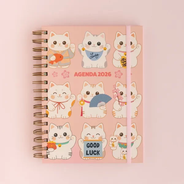 Es semana a la vista, tamaño A5, con tapa dura y elástico a tono. Encuadernación en espiral. Agenda de 100 hojas, impresa en papel obra de 80gr. El interior es el mismo en todas las agendas.