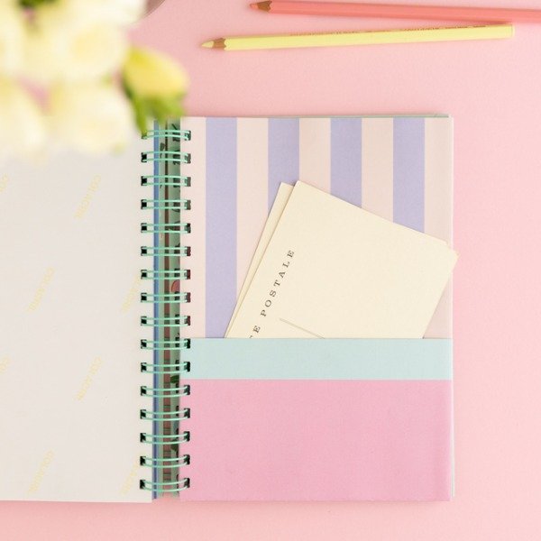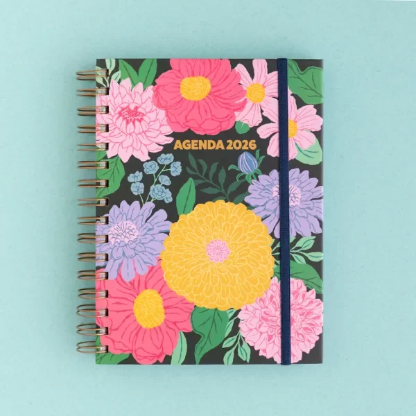 Es semana a la vista, tamaño A5, con tapa dura y elástico a tono. Encuadernación en espiral. Agenda de 100 hojas, impresa en papel obra de 80gr. El interior es el mismo en todas las agendas.