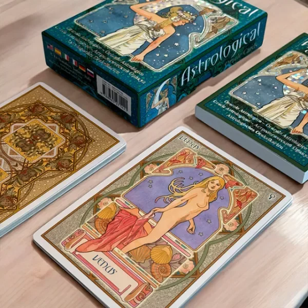 Cada signo o planeta, interpretado con las delicadas ilustraciones Art Nouveau de Antonella Castelli, se deja abrazar por las fuerzas de los sentimientos y las intuiciones. Más que un oráculo, más que simples cartas inspiradoras, estas cartas traen la sabiduría de las estrellas a tu vida cotidiana.