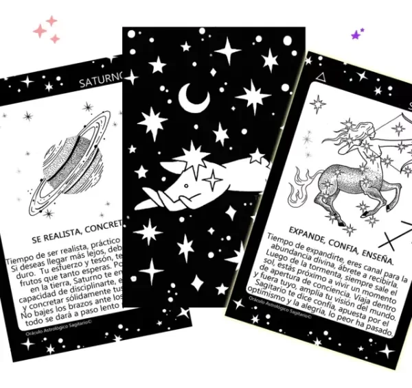 Oráculo Astrológico Sagitario Tuluz© Sumergite en la sabiduría del cosmos con este oráculo inspirado en la energía de los 12 signos zodiacales, las 12 casas, 8 planetas y 2 luminarias. No necesitás ser experto en astrología para usarlo; su diseño accesible permite que cualquier persona pueda recibir mensajes profundos y personalizados.