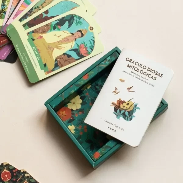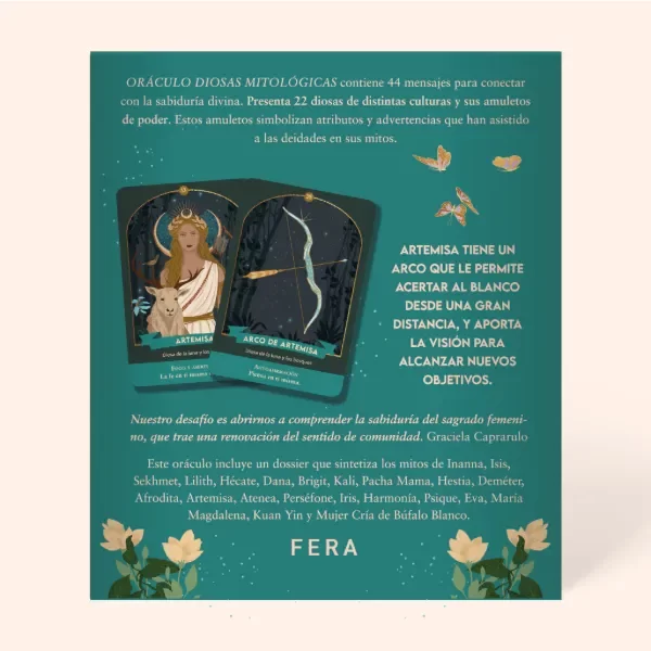 Oráculo Diosas mitológicas contiene 44 mensajes para conectar con la sabiduría divina. Presenta 22 diosas de distintas culturas y sus amuletos de poder. Estos amuletos simbolizan atributos y advertencias que han asistido a las deidades de sus mitos.