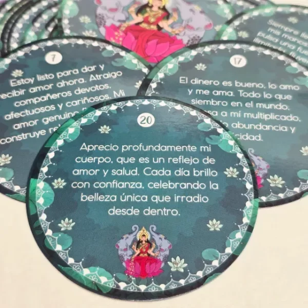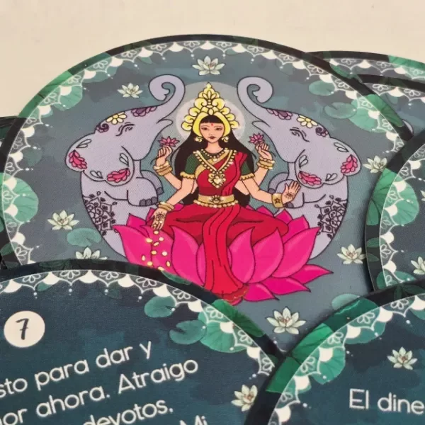Este oráculo, compuesto por cartas cuidadosamente diseñadas, te invita a conectar con la energía divina de Lakshmi para atraer abundancia, bienestar y armonía a tu vida. Cada carta contiene afirmaciones poderosas que nutren tu alma y te guían hacia una vida plena y próspera.